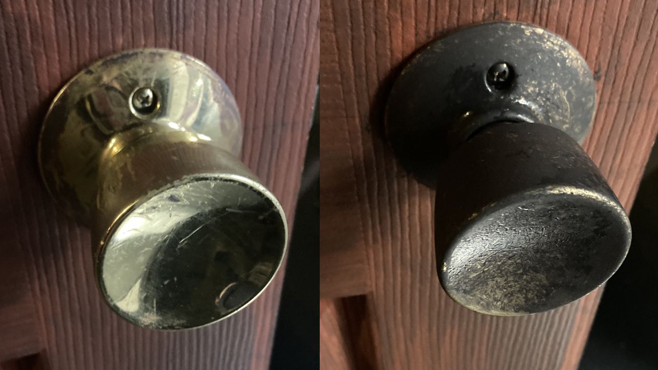 Work Highlights: stenciling, lining, graining, and glazing of floor and doors, as well as ageing on doorknobs.